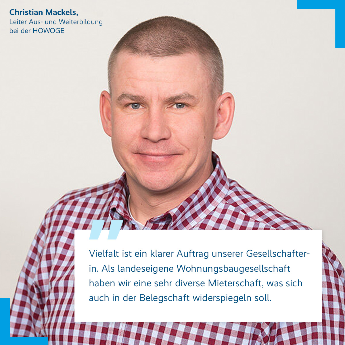 „An einem genauen Blick führt kein Weg vorbei. Vielfalt ist ein klarer Auftrag unserer Gesellschafterin. Als landeseigene Wohnungsbaugesellschaft haben wir eine sehr diverse Mieterschaft, was sich auch bestmöglich in der Belegschaft widerspiegeln soll“, sagt Christian Mackels, Leiter Aus- und Weiterbildung bei der HOWOGE. Auch mit Blick auf die Arbeitsmärkte gebe es eine größere Notwendigkeit denn je, bei möglichst unterschiedlichen Communities als potenzielle Arbeitgeberin wahrgenommen zu werden.