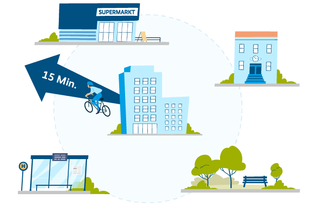 Wer hat welchen Bedarf? Um künftige Mobilitätsdienste zu planen und optimal zu steuern, hat die HOWOGE einen eigenen Mobilitätsindex erstellt. Dazu wurde jeder Hauseingang in den HOWOGE Quartieren untersucht. Gemessen hat das Mobilitäts-Team die Entfernungen zu sogenannten „Points of Interests“ und wie weit diese vom Wohnort entfernt liegen. Welche Ziele wie beispielsweise Einkaufsmöglichkeiten, Bildungseinrichtungen oder Freizeitangebote sind in 15 Minuten zu Fuß erreichbar, welche liegen 15 Minuten Fahrradweg entfernt und wie gut ist die ÖPNV-Anbindung? Diese Untersuchung ist ein Baustein für die aktuell entstehende Mobilitätsstrategie, die auch das Konzept der Flächengerechtigkeit berücksichtigt.