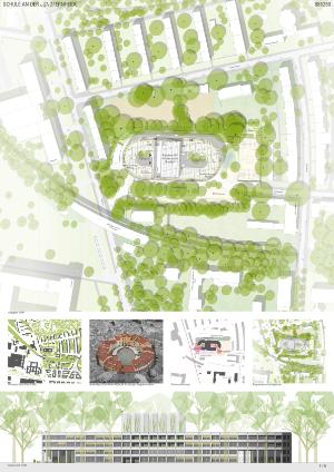 Aldo Rossi beschreibt in „Die Architektur der Stadt“ mit dem Begriff der „Permanenz“ die Fähigkeit von urbanen Artefakten, ihre Form beizubehalten, obwohl sich ihre Funktionen ändern. Wir verstehen das Grundstück als „Locus“, einen besonderen Ort im Sinne Rossis. Geprägt durch seine frühere Nutzung als Sportplatz haben sich die Form von Laufbahn und Spielfeld über die Topografie und eine imposante Baumkulisse in die Stadt eingeschrieben. Sie verankern den Ort bereits heute, über eine erste Nutzungsänderung hinweg, im „kollektiven Gedächtnis“.