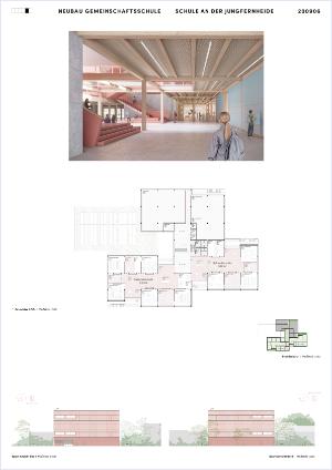 Alle Jahrgangsstufen der Gemeinschaftsschule finden ihren Platz in einem Gebäude mit dem Ziel, jede Schülerin und jeden Schüler der heterogenen Schülerschaft durch Individualisierung und Differenzierung von Lernangeboten sowie Lernräumen bestmöglich zu fördern. Nach außen sind die Gebäudeteile für die Primarstufe im Norden sowie die Gebäudeteile für die Oberstufen im Süden klar ablesbar.