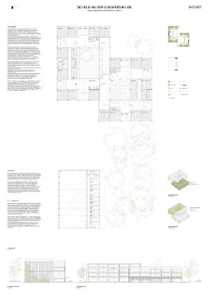 Durch den hohen Grad an Vorfertigung kann eine zügige, kostengünstige und termingerechte Baustelle gewährleistet werden. Die Hybridbauweise nutzt die einzelnen Materialvorteile gezielt: Stahlbeton übernimmt lastintensive und aussteifende Funktionen und gewährleistet große Robustheit, Dauerhaftigkeit, einen guten Schallschutz und thermische Masse. Das Holz - als nachwachsender Rohstoff - reduziert den CO₂-Fußabdruck und trägt zu einem angenehmen Raumklima und einer ruhigen Atmosphäre bei. Die Tragstruktur ist grundlegend konstruktiv materialsparend und auf eine lange Lebensdauer hin ausgelegt.