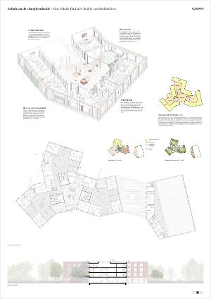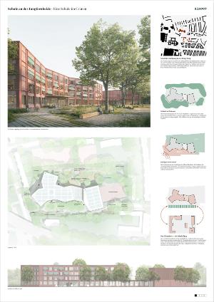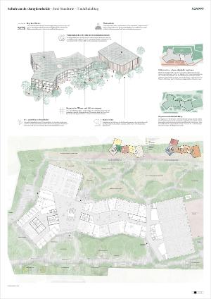 Der Entwurf folgt dem Leitbild einer kompakten, inklusiven Schule im Grünen, die Lernen, Begegnung und Bewegung in einer klar strukturierten räumlichen Ordnung zusammenführt. Die Schule versteht sich als Teil eines zusammenhängenden Bildungsortes beiderseits der Siemensbahn. Kurze Wege, eindeutige Adressen und eine robuste Grundstruktur ermöglichen einen selbstverständlichen Schulalltag zwischen den beiden Standorten.