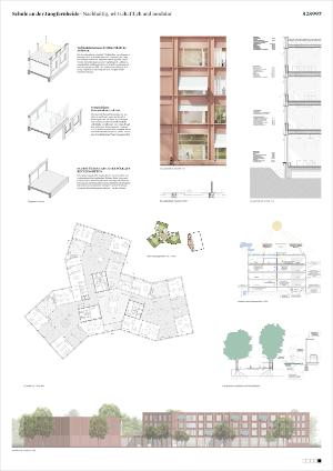 Die Gliederung der Fassade macht eine komplette Vorfertigung der tragenden Fassadenelemente möglich. Der hohe Vorfertigungsgrad führt zu einer verkürzten Bauzeit, Terminsicherheit und zu hohen Ausführungsqualitäten der Elemente. Das vorgeschlagene Fassadenmaterial sichert niedrige Unterhaltskosten und eine dauerhafte und gut alternde Schönheit. Im Sinne des kreislaufgerechten Bauens sollen sämtliche Fassadenelemente zerstörungsfrei demontierbar und wieder verwendbar gefügt werden. Der Sockel erhält durch elementierte Beton-Elemente eine beanspruchbare, dauerhafte Materialisierung.