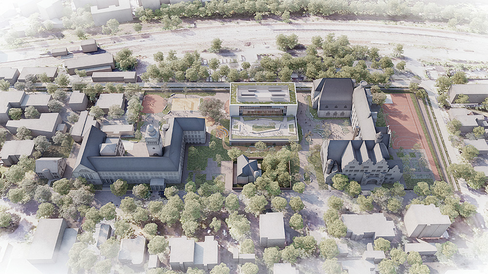 Auf Grundlage der Ergebnisse aus dem Partizipationsverfahren ist die Vorplanung durch KbA Hausmann Architekten abgeschlossen. Durchgesetzt hat sich eine Lösung in Anlehnung an das Berliner Lern- und Teamhauskonzept. Um die Bedarfe bestmöglich umzusetzen, wird das bestehende Schadowgymnasium nicht nur saniert, sondern erhält auch einen Ergänzungsbau.